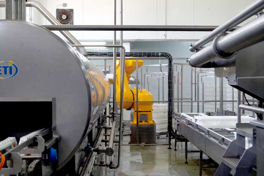 Brindamos un sistema continuo y completamente automático de drenaje de suero, preprensado, formación de bloques de queso y llenado de molde.