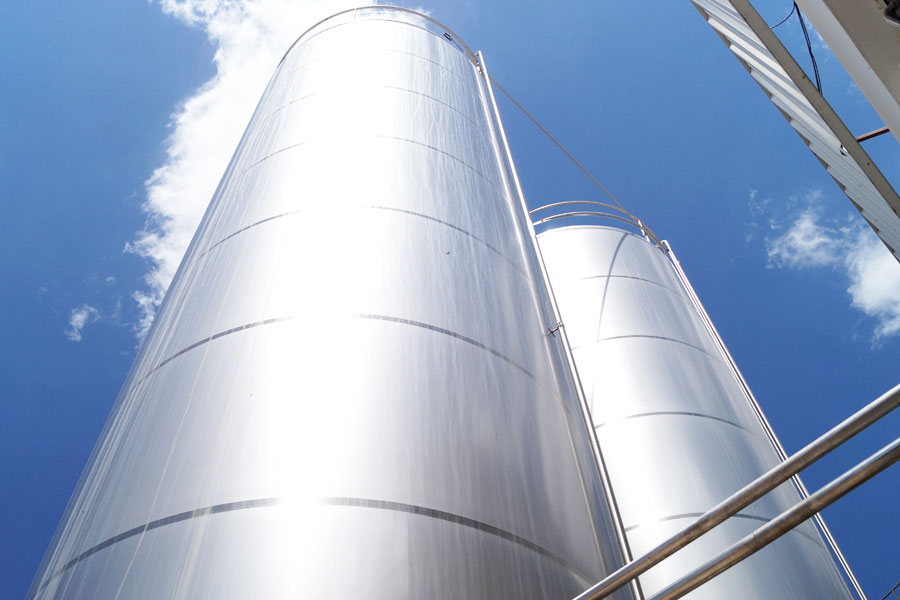 Tanque balanceador, electrobomba centrífuga sanitaria de acero inoxidable para leche y sus cañerías de interconexión.